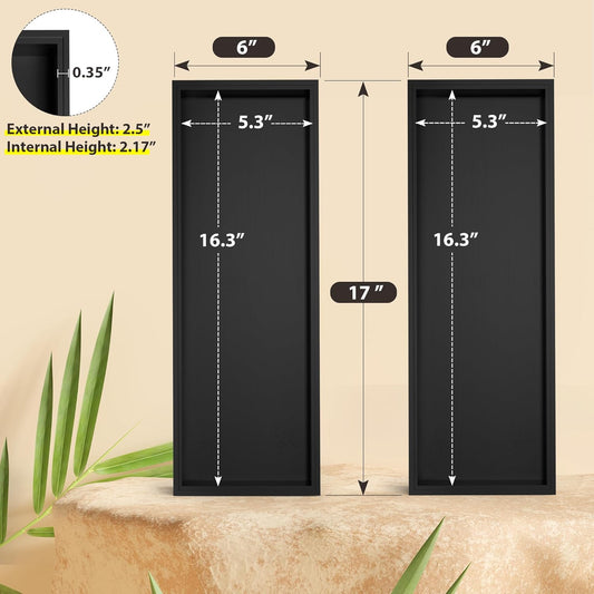 Kitchen Drawer Organizer Tray, Stackable Black Bamboo Drawer Organizer for Large Silverware, Utensils, Cutlery, Flatware, Junk, Dresser, Bathroom, 17" x 6" x 2.5" (Set of 2)