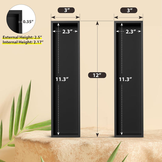 Bamboo Drawer Organizer, Narrow Silverware Organizer for Kitchen, Stackable Utensil Organizer, 2 Pcs Flatware Organizer, Wooden Storage Box Tray (Black, 12 X 3 X 2 Inch)