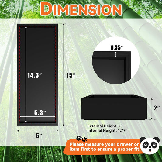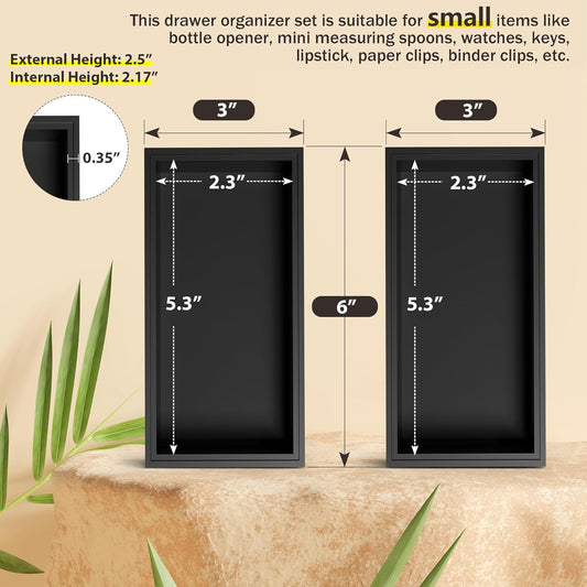 Kitchen Drawer Organizer Bins, Black Bamboo Drawer Organizer Stackable for Silverware, Utensils, Cutlery, Flatware, for Junk Drawer, Dresser, Bathroom, 6" x 3" x 2.5" (Set of 2)