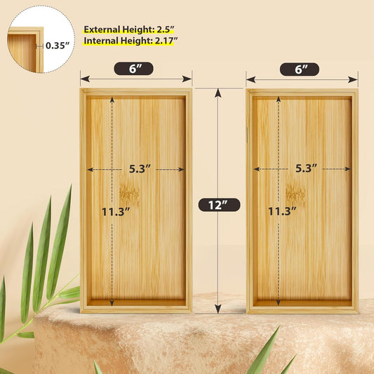 Kitchen Drawer Organizer Bins, Stackable Bamboo Deep Drawer Organizer for Silverware, Utensils, Cutlery, Flatware, Junk Drawer, Dresser, Bathroom, 12" x 3" x 2.5" (Set of 2)