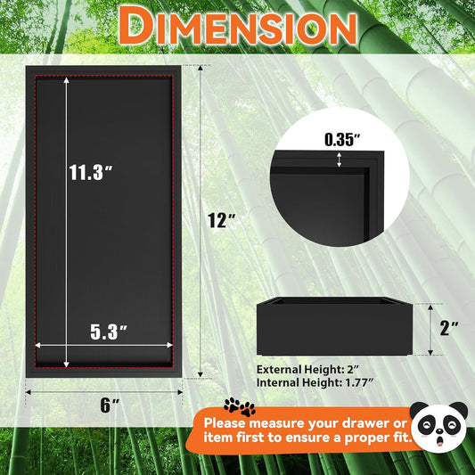 Kitchen Drawer Organizer Bins, Black Bamboo Drawer Organizer Stackable for Silverware, Utensils, Cutlery, Flatware, for Junk Drawer, Dresser, Bathroom, 12" x 3" x 2.5" (Set of 2)