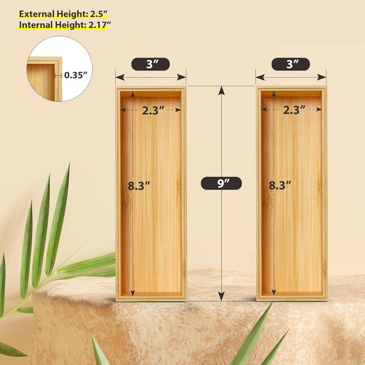 Kitchen Drawer Organizer Bins, Stackable Bamboo Deep Drawer Organizer for Silverware, Utensils, Cutlery, Flatware, Junk Drawer, Dresser, Bathroom, 9" x 3" x 2.5" (Set of 2)