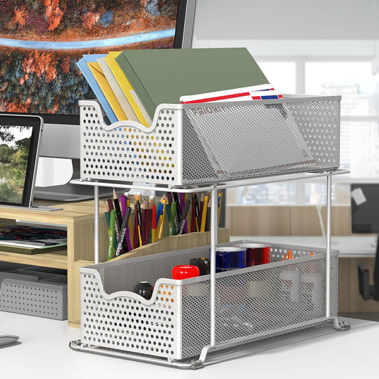 SIMPLE HOUSEWARE 2 Tier Sliding Cabinet Basket Organizer Drawer, Silver