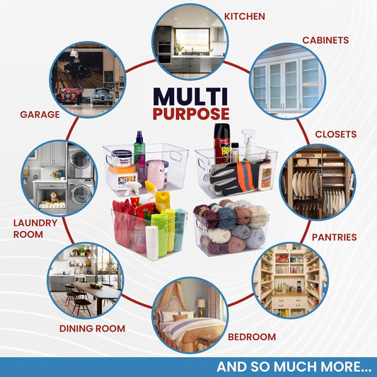 Sorbus 8 Pack Medium Clear Plastic Storage Bins, Clear Organizer Bins with Handle for Kitchen, Pantry, Cabinet, Refrigerator, Craft, Toys, Clothes, Closet, Under Sink, Bathroom Organizers and Storage