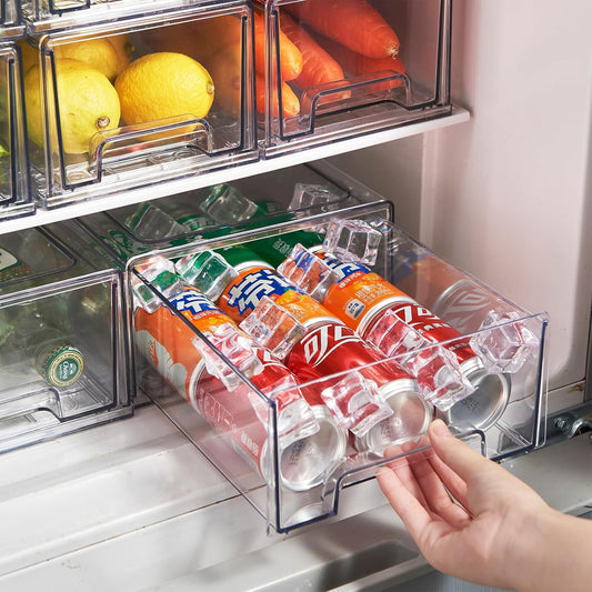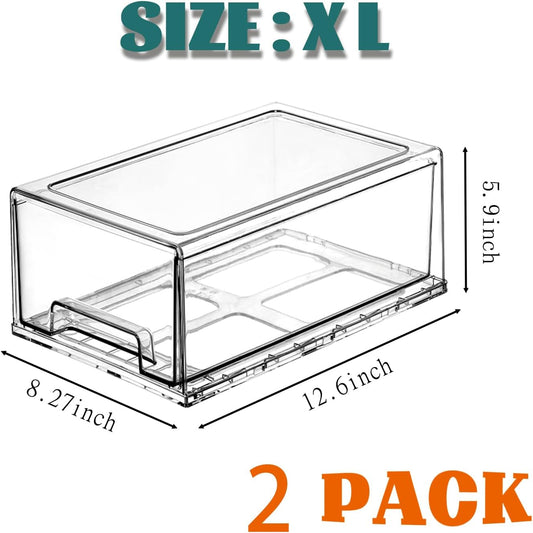 PeJeyiee Clear Stackable Refrigerator Organizers and Storage Drawers - Pull-Out Fridge Bins with Anti-Slip Base & Easy Clean, Plastic Organizers for Kitchen Pantry Cabinet Closet (2XL)