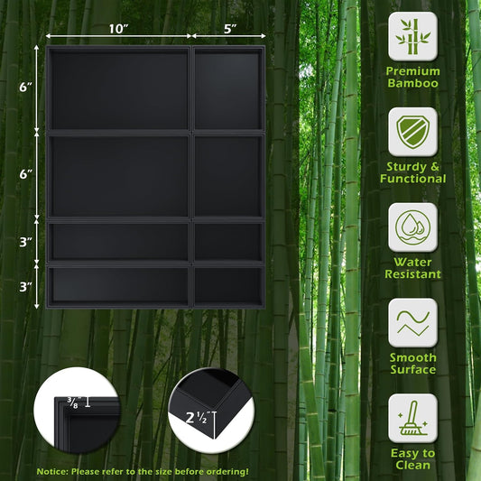 Bathroom Drawer Organizer Trays, Bamboo Drawer Organizer Kitchen Utensils Silverware Organizer, 8 PCS Wood Box Stackable Bins for Makeup, Office Desk, Junk Drawer (Black)