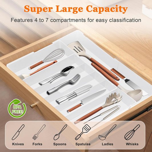 Expandable Large Silverware Organizer - BPA-Free Food-Safe Kitchen Utensil Drawer Organizer, Adjustable 4-7 Deeper Slots Cutlery Tray for Forks Knives, Kitchen Organizers and Storage Solution