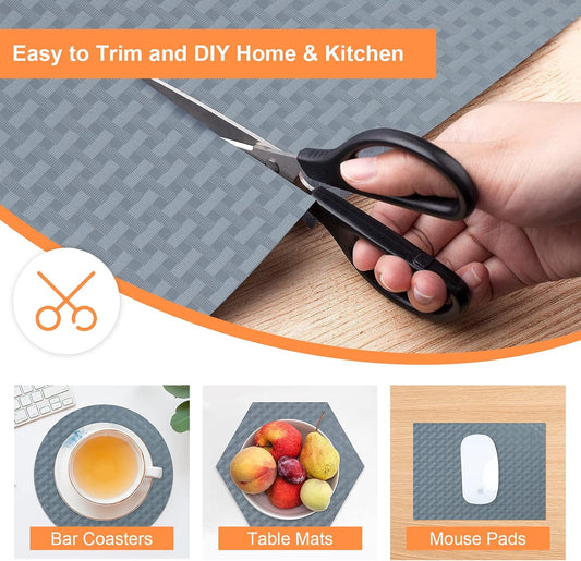 Shelf Liners for Kitchen Cabinets Non-Adhesive, Drawer Mats Liner for Bathroom, Plastic Pantry Shelf Liner Non Slip, Waterproof Washable Cabinet Protector Liners for Shelves, Cupboard Liner Gray