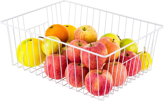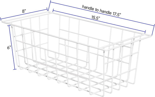 SANNO Freezer Baskets Wire Storage Baskets Closet Baskets Bin Farmhouse Organizer Storage Bins Organization Storage for Home, Office, Bathroom, Pantry -Set of 2, 15.7" White-2P