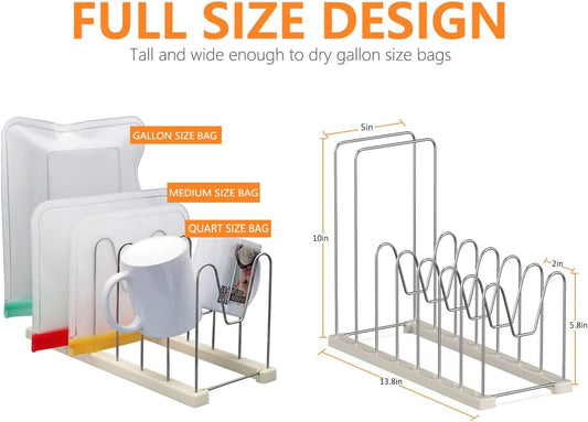Reusable Bag Drying Rack,Silicone Bag Drying Rack,Plastic Bags Dryer Rack,Dryer Rack for Silicone Storage Bags,Draining Stand Holder for Cups,Bottles,Pan Lid&Cutting Board Organizer