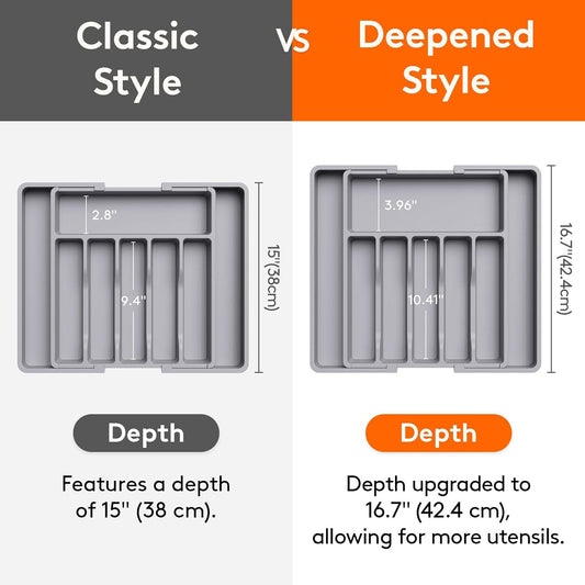 Lifewit Deep Silverware Drawer Organizer for Kitchen, Expandable Utensil Tray, Adjustable Flatware Cutlery Holder, Large Plastic Kitchen Storage for Spoons Forks Knives, 22.4 x 16.7 x 2 inches, Gray