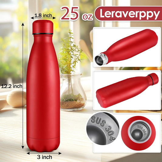 25oz Cola-Bottle Shaped Stainless Steel Leak-proof Water Bottle,Double Wall Vacuum Insulated Metal,Travel Mug For Sports Indoors & Outdoors,BPA-Free School Kids Flasks,Red(4 Pack)