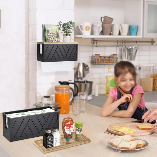 Set of 2 Paper Towel Dispenser Wall Mount, Paper Towel Holder Wall Mounted with Lid, Solid Wood Commercial C-Fold, Z-Fold, Trifold Hand Paper Towel Holder Hand Towel Holder for Bathroom Kitchen Decor