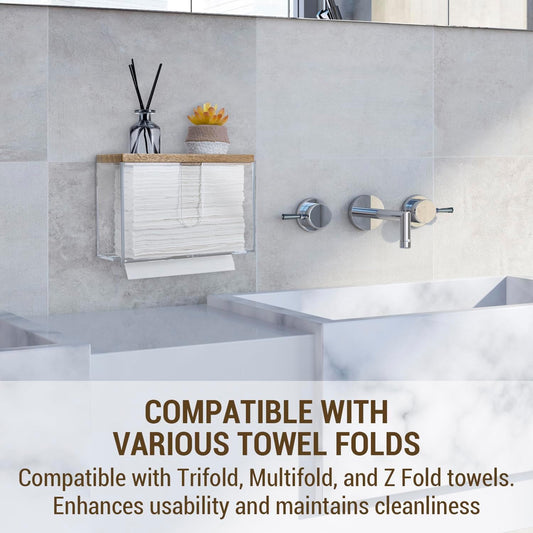 MyGift Modern Premium Clear Acrylic Bathroom Paper Towel Holder for Trifold, Z-Fold and Multifold, Commercial Grade Countertop Disposable Folded Napkin Dispenser Tray for Home, Office, or Business