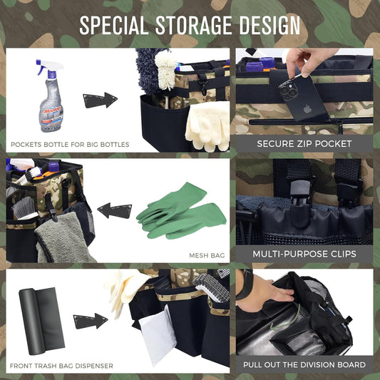 Wearable Cleaning Caddy Organizer with Handle & Shoulder Straps for Housekeepers, Under Sink & Car Cleaning Tool Organizer Bag with 4 Foldable Dividers (Camouflage)