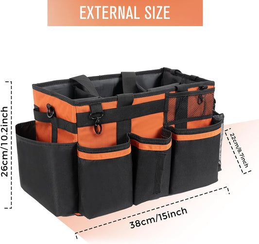 Wearable Cleaning Caddy, Cleaning Caddy Supplies Organizer with Handle & Shoulder Straps for Housekeepers, Under Sink & Car Cleaning Tool Organizers Bag with 4 Foldable Divider (RetroOrange)