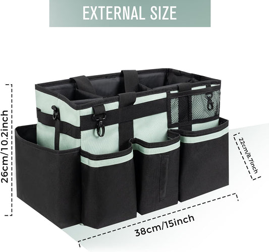 Wearable Cleaning Caddy, Cleaning Caddy Supplies Organizer with Handle & Shoulder Straps for Housekeepers, Under Sink & Car Cleaning Tool Organizers Bag with 4 Foldable Divider (Celadon)