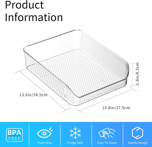 Sorbus Stackable Refrigerator Organizer Bins - Clear Storage Bins for Kitchen Pantry, Freezer & Fridge Organization - Food Organizing Plastic Containers with Handles for Countertops & Drawers (4 Pack)