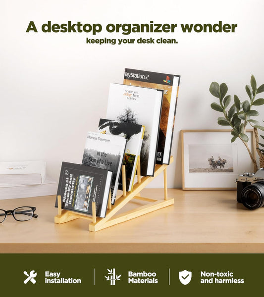 Bamboo Dish Drying Rack, 5 Slots Kitchen Organizer Craft Show Display Stand for Holds Plates, Bowls Cups, Cutting Boards, Pot Lids, Canvas, Books, Records, Artwork and Magazine