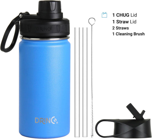 DRINCO Stainless Steel Water Bottle Spout Lid Vacuum Insulated Double Wall Water Bottle Wide Mouth (40oz 32oz 22oz 18oz 14oz) Leak Proof Keeps Cold or Hot (14 oz, 14oz Morning Sky Blue)