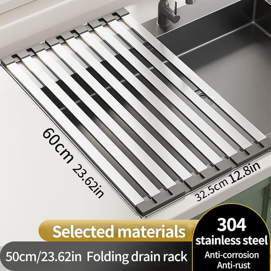 Foldable Dish Drying Rack, Over The Sink Dish Drying Rack ,Dish Drying mat,Dish Drying mats for Kitchen Counter,Stainless Steel Multifunctional mat (19.69×12.8in)