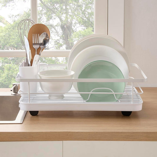 Dish Drying Rack 3 Piece Dish Drainer with Drainboard Set for Kitchen Counter – Dish Rack with Removable Utensil Holder & Swivel Spout for Countertop – DishRack for Plates, Cups & More, White