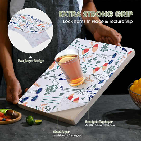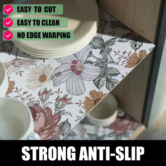 Floral Shelf and Drawer Liner for Kitchen Cabinets,12IN x 20FT Non-Adhesive and Strong Non-Slip Cabinet Drawer Liners for Kitchen Shelf, Waterproof Cupboard Liners,Easy to Clean
