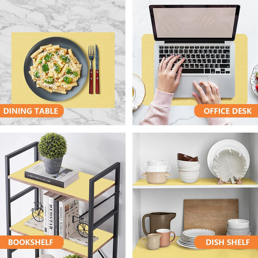 Shelf Liners for Kitchen Cabinets Refrigerator Liners Waterproof & Oil-Proof Kitchen Cupboard Liner Non Adhesive Drawer Mats Cabinet Liners for Shelves -Yellow Beige 11.8 x 236.2 Inches