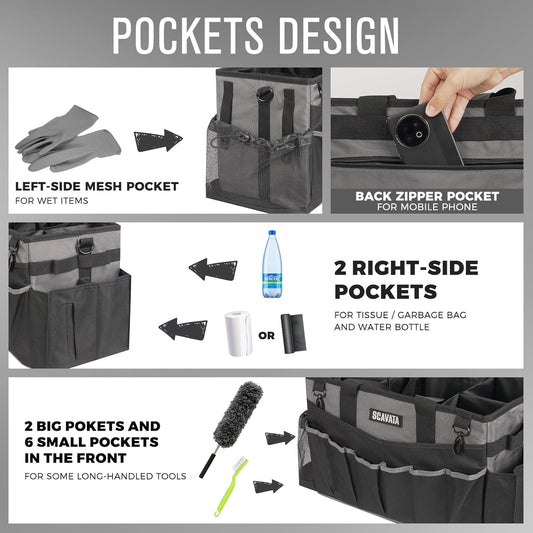 Wearable Cleaning Caddy Bag, Cleaning Caddy Supplies Organizer with Handle & Shoulder Straps for Housekeepers, Under Sink & Car Cleaning Tool Organizers with 4 Foldable Divider (DarkGrey)