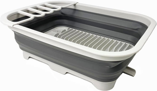 SAMMART 12L (3.17 Gallon) Collapsible Dish Drainer with Swivel spout - Foldable Drying Rack Set - Portable Dinnerware Organizer - Space Saving Kitchen Storage Tray (Grey)
