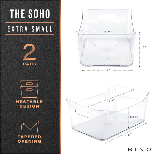 BINO | The SOHO Collection Plastic Storage Bins, X-Small - 2 Pack, Clear | Pantry and Fridge Organizer Containers, Kitchen Cabinet and Medicine Cabinet Bins