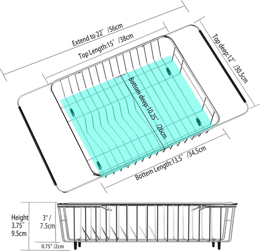 Dish Drying Rack in Sink, Extendable Stainless Steel Dish Drainers for Kitchen Counter, Anti-Rust Dish Dryer Rack with Utensil & Cup Holders, for Inside Sink, Over The Sink