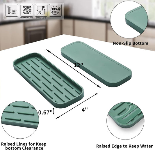 Silicone Kitchen Sink Organizer Tray for Multiple Usage,Eco-Friendly Sponges Holder for Kitchen Bathroom Counter or Sink,Dish Soap Dispenser,Scrubber,Bottle,Cup (Green, 12"×4")
