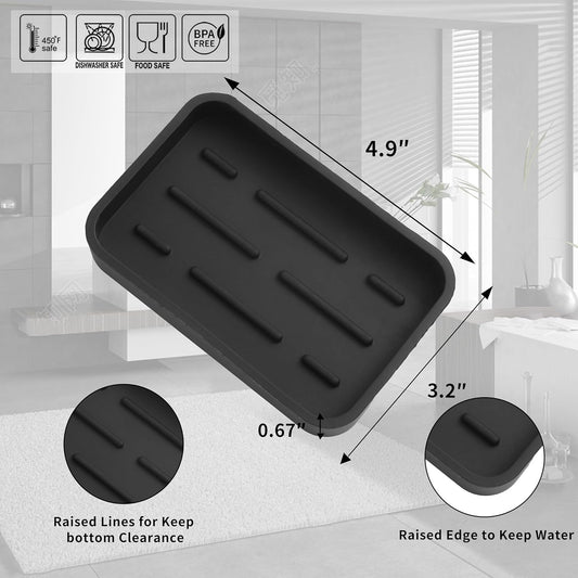 Silicone Kitchen Sink Organizer Tray for Multiple Usage,Easy Clean Sponges Holder for Kitchen Bathroom Counter or Sink,Dish Soap Dispenser,Scrubber,Bottle,Cup Black 4.9”x 3.2”