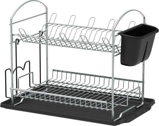 SIMPLE HOUSEWARE 2-Tier Dish Rack with Drainboard, Silver