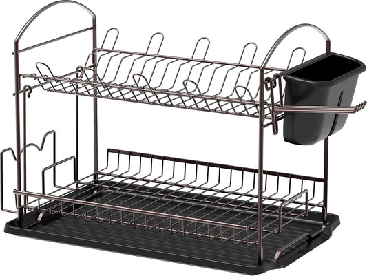 SIMPLE HOUSEWARE 2-Tier Dish Rack with Drainboard, Bronze