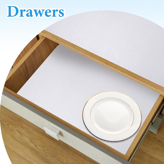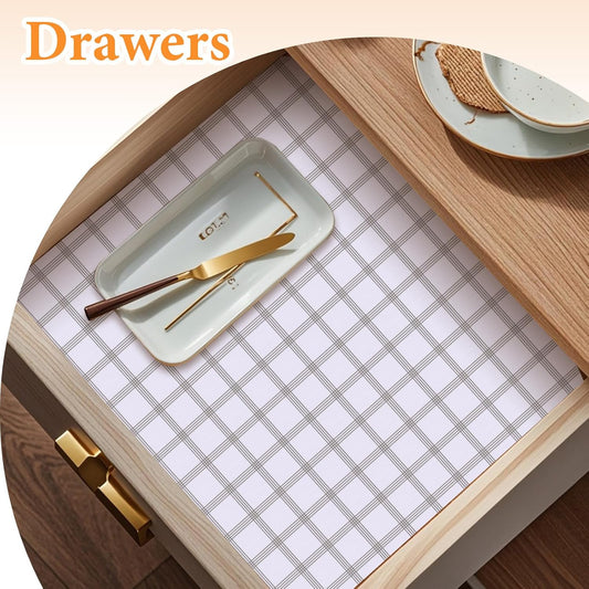 Shelf Liner for Kitchen Cabinets Non Adhesive Drawer Liner Non-Slip Thickened Shelf Liner Paper Strong Easy to Clean for Tool Box Refrigerator with Knife and Tape Measure, White Square,23.6 x 354.3 IN