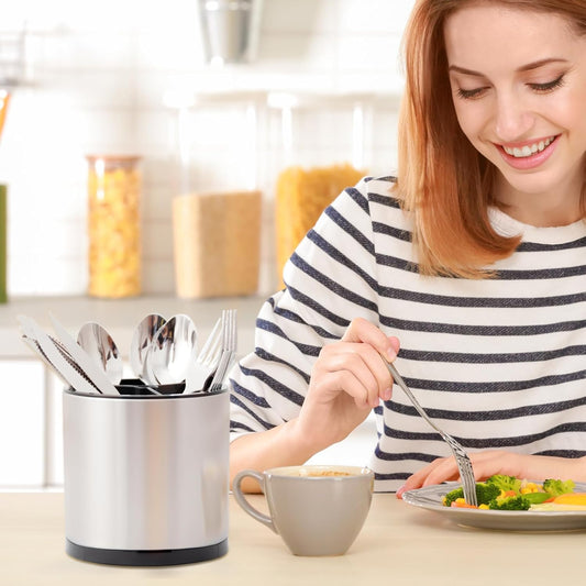 Silverware Caddy Cutlery Organizer for Countertop 360° Rotating Silverware Holder for Fork Knife Spoon Flatware Organizer 3 Compartments Cutlery Holder