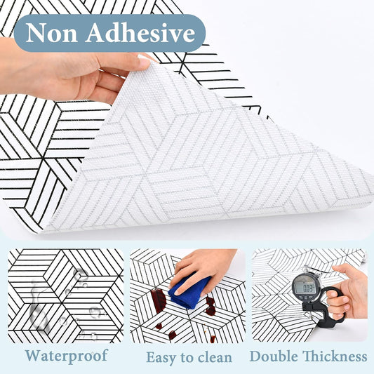 Shelf Liners for Kitchen Cabinets Non Adhesive Shelf Liner Paper Non-Slip Thickened Drawer Liner Easy to Clean for Tool Box Refrigerator with Knife and Tape Measure, Black Geometric, 17.3 x 236.2 in