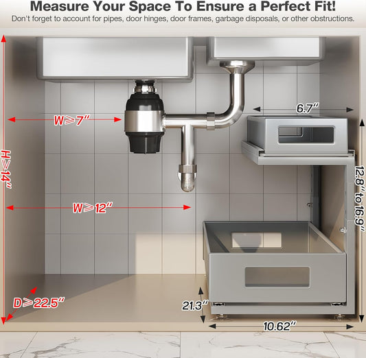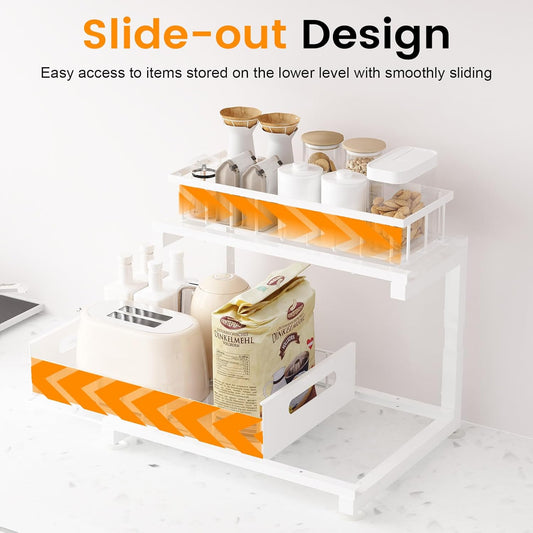 Under Sink Organizer, Silk-Smooth Metal Sliding Drawer Organizers and Storage Rack, Pull Out Cabinet Shelf for Kitchen, Bathroom, Pantry, Cabinet, Closet