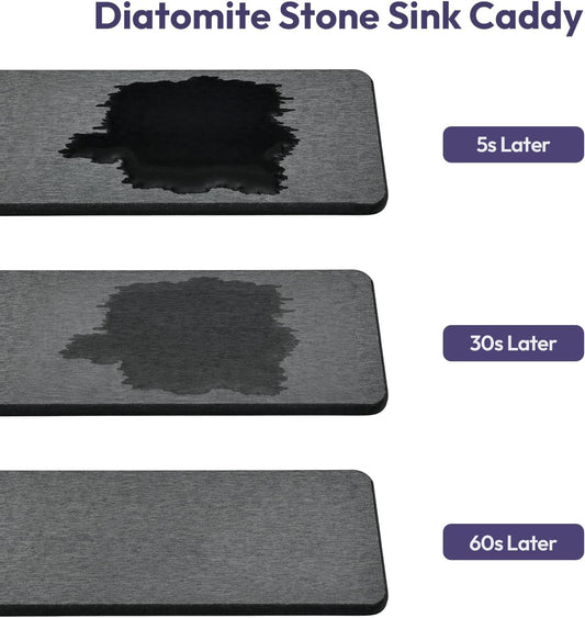 HapiRm Sink Caddy Sponge Holder - Kitchen Sink Organizer with Instant Drying Stone and Brush Holder, Stainless Steel Sponge Caddy for Kitchen Countertop - Black