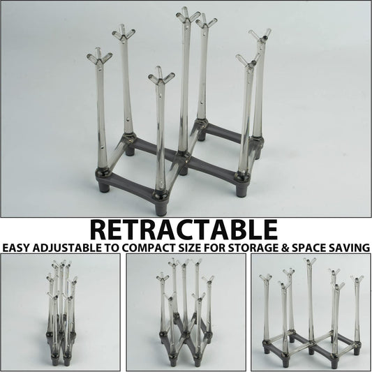2 Pcs Cup Drying Racks Set, Retractable Drinking Glass & Baby Bottle Drainer Stand, PP Material Mug Draining Organizer, Kitchen Countertop Dishes Holder, Gray