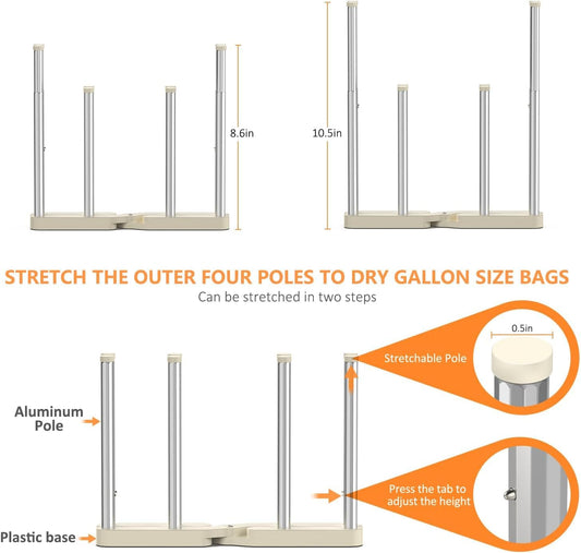 Reusable Storage Bag Drying Rack, Retractable Metal Bottle Drying Rack,Collapsible Cup Draining Rack for Water Bottles, Mason Jars,Mugs,Glass and Sports Bottle (2 PCS)
