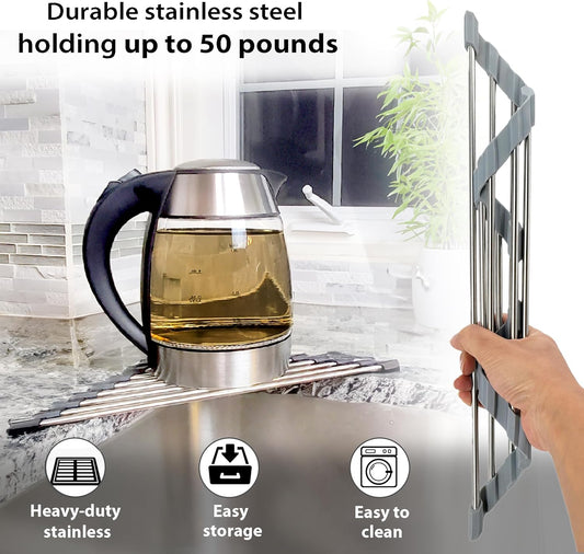 Roll Up Sponge Holder for Counter, Sink Organizer for Kitchen, Bathroom, Laundry Room, 304-Stainless Steel Sink Organizer for Sponge, Brush, Scrubber, Soap Dispenser Holder, Dish Drying Rack (Gray)