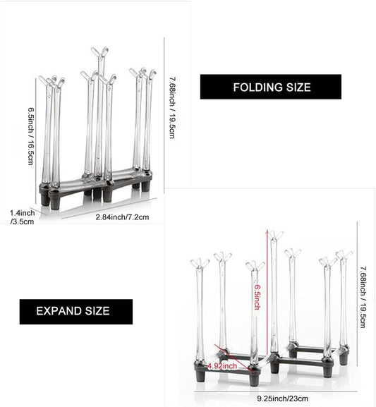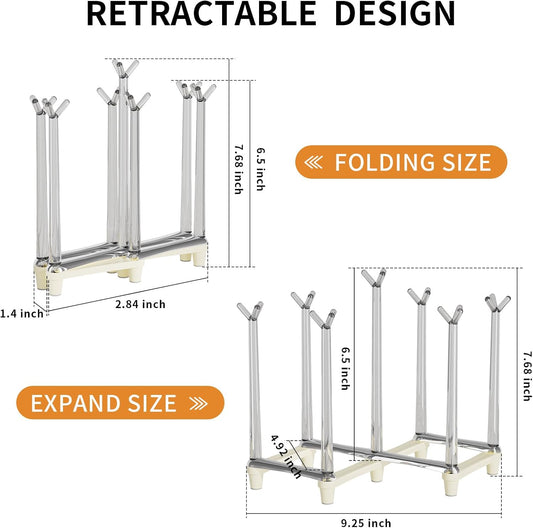 Marbrasse Retractable Cup Drying Rack, Drinking Glass and Sports Bottle Drainer Stand, Plastic Bag Dryer with Non-Slip Bottom for Kitchen Countertop