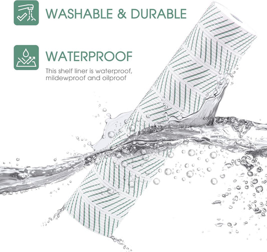 Glotoch Shelf Liners for Kitchen Cabinets Non-Adhesive,12in x 20FT Non Slip Shelf Liner Waterproof Contact Paper for Cabinets and Drawers,Pantry, EVA Wire Shelf Liners,White and Green Herringbone