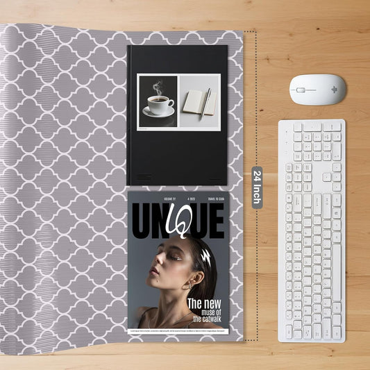 Glotoch Shelf Liner 12" x 30 ft. - Non Adhesive Refrigerator, Kitchen, Drawer Liners, Waterproof and Durable Fridge Table Place Mats for Cupboard, Cabinet, Drawer Liner, Quatrefoil Gray