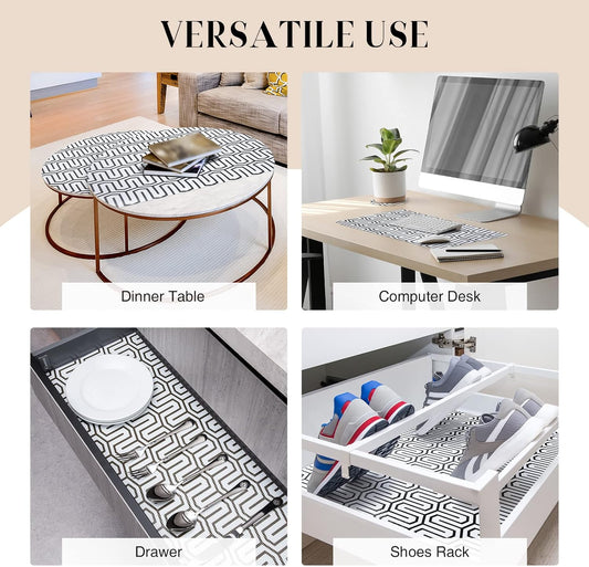 Glotoch 17.5"X 96" Shelf Liners for Kitchen Cabinets-Non Adhesive Cabinet Liners for Shelves, Waterproof Drawer Liner for Kitchen Fridge/Wire Shelf/Bathroom, Pantry, Durable, Non Slip, White And Balck