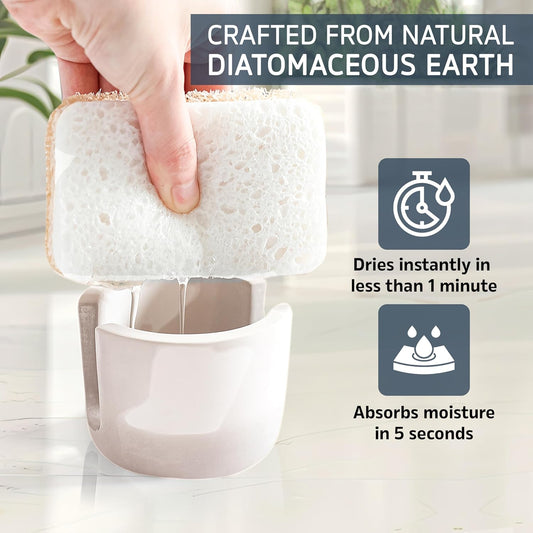 MOPHONICHOME Sponge Holder, Stone Sponge Holder for Kitchen Sink - Diatomite Kitchen Sink Caddy, Quick Dry, Super Absorbent, Modern Design, Cream