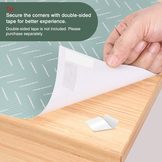 Glotoch Non Adhesive Shelf Liners for Kithchen Cabinets,Non Slip Waterproof Drawer Liners for Dresser, Liner, Fridge, Wire Shelving,Pantry,Heavy Duty, White and Green Herringbone 12X60 Inch